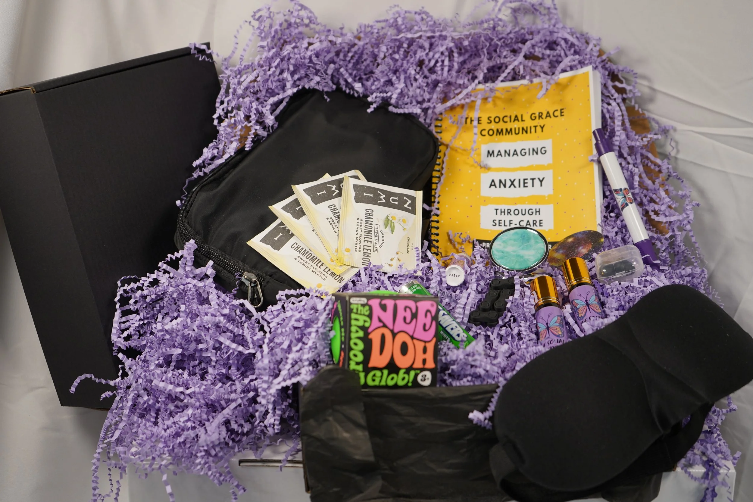 The Social Grace Community provides support and practical skills to the general public who desire to improve self-care through products developed to address topic-specific problems, primarily related to behavioral and healthcare needs. Products include self-care kits related to general self-care, anxiety, depression, and a host of other conditions endorsed by both consumers with lived experience and licensed professionals.